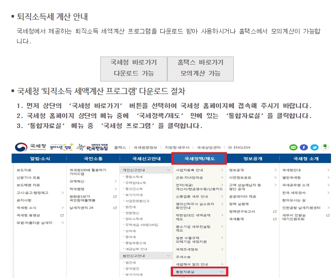 퇴직소득세도 사이트에서 계산해 보는게 가능합니다.