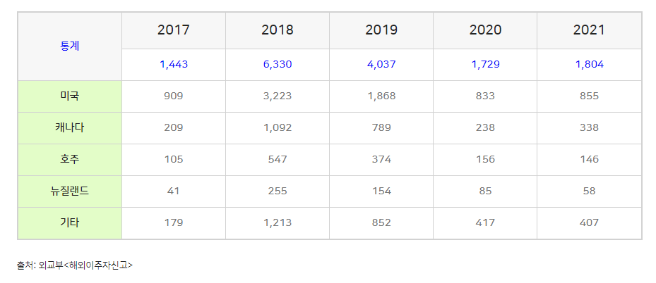 현실적으로는 캐나다 미국 호주 뉴질랜드로 순위를 놓고 보았습니다.
