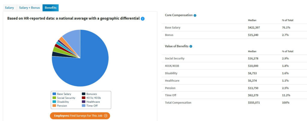 그만큼 큰 책임감을 가지고 있으며 환자에게 상당히 큰 영향력을 미치는 직업입니다. 연봉은 마취전문의보다 높은 422,397 달러입니다.