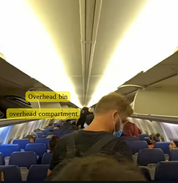 짐칸은 영어로 Overhead 머리 위에 있다고 해서 Overhead bin 또는 Overhead compartment라고 합니다.