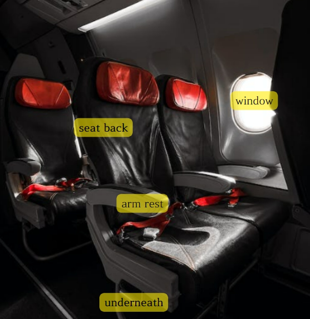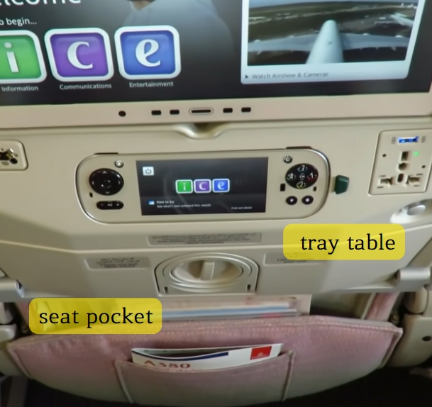 그리고 seat back은 의자 뒷부분으로 비행 중에 편하게 눕혀서 사용하던 의자를