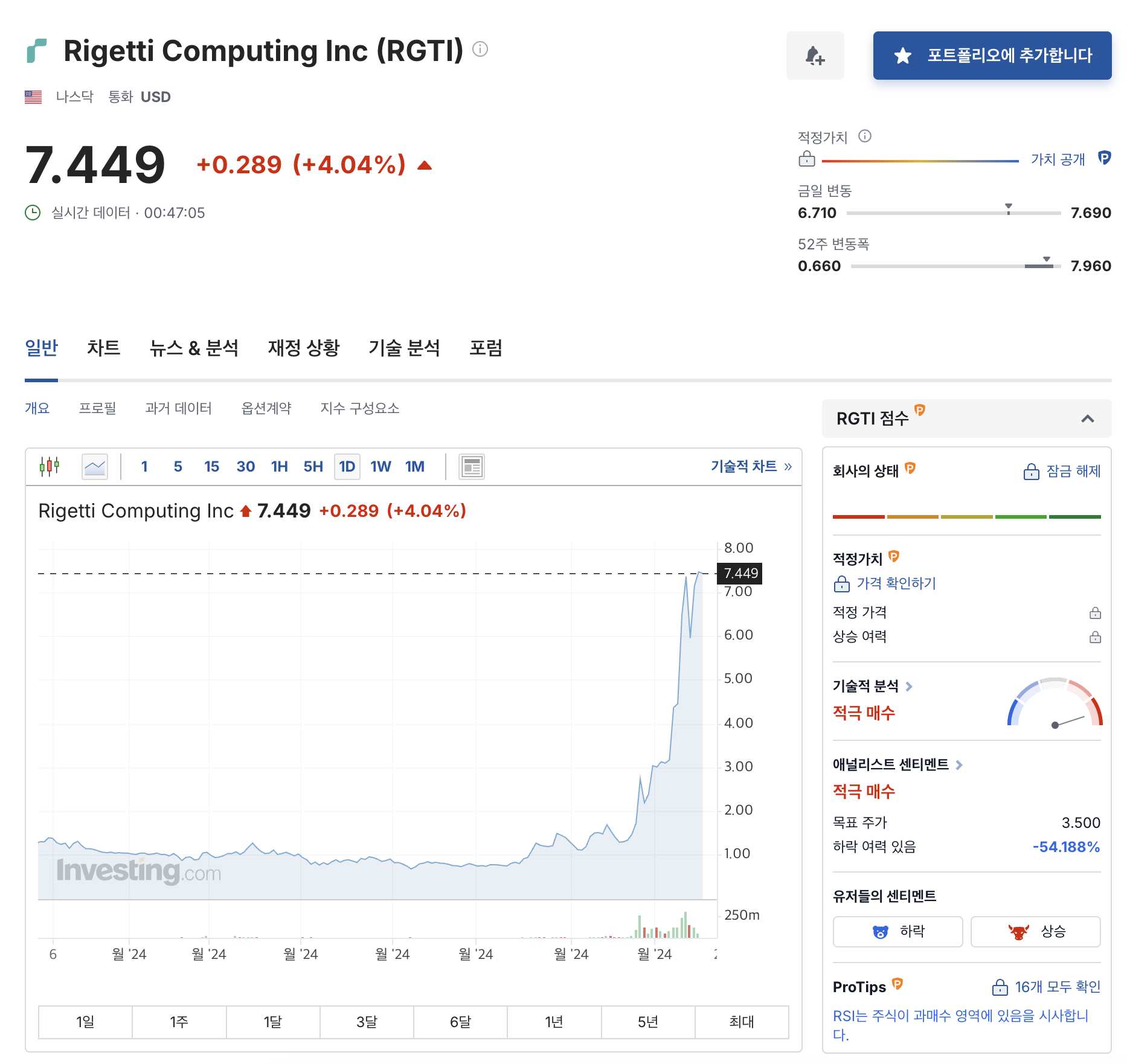 2️⃣ 리제팅 컴퓨팅 (RGTI): 초전도체 기술의 리더