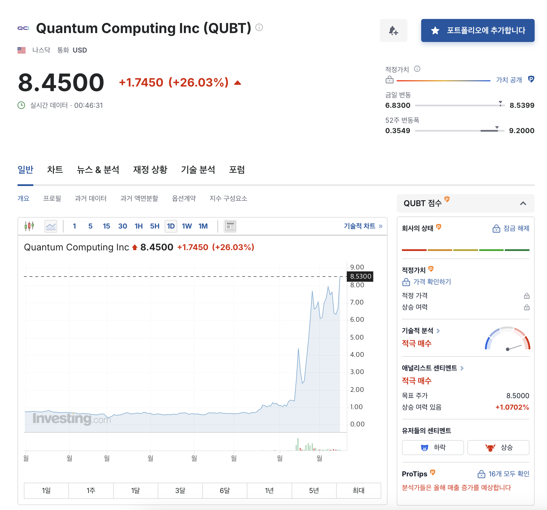 오늘은 아이온큐 리제티컴퓨팅(RGTI)를 포함한 양자 컴퓨터 탑 5 기업의 반등 이유와 성장 가능성을 살펴보겠습니다!