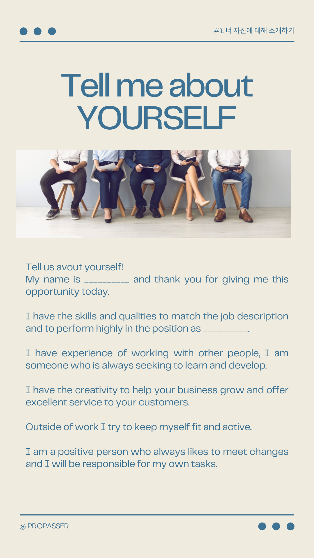 주저하지 말고 나 자신에 대해 마음껏 이야기 하면 되는 질문입니다.