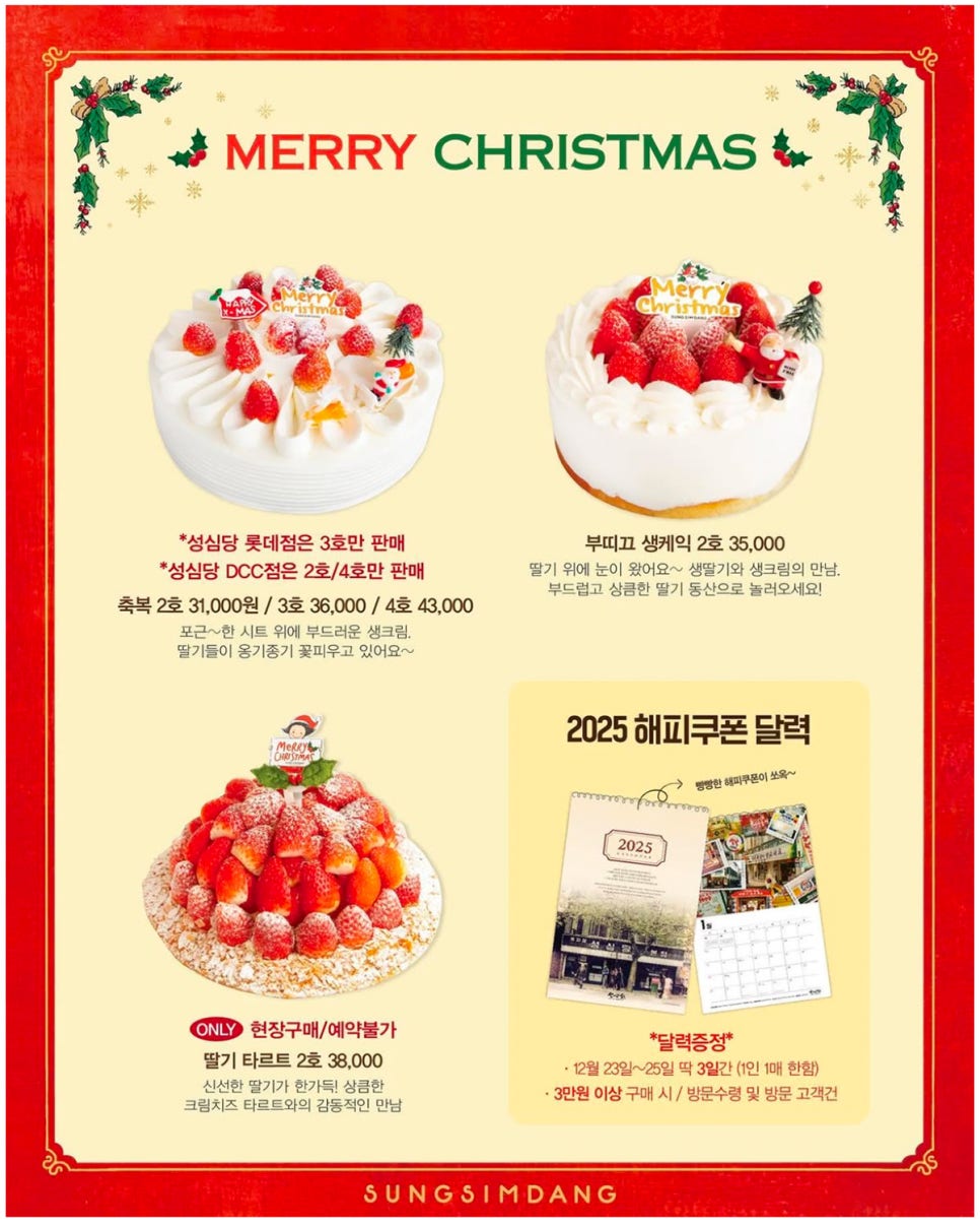 다가오는 크리스마스, 성심당 케이크로 소중한 사람들과 잊지 못할 추억을 만들어 보세요. 이번 크리스마스는 달콤함으로 가득 채우시길!