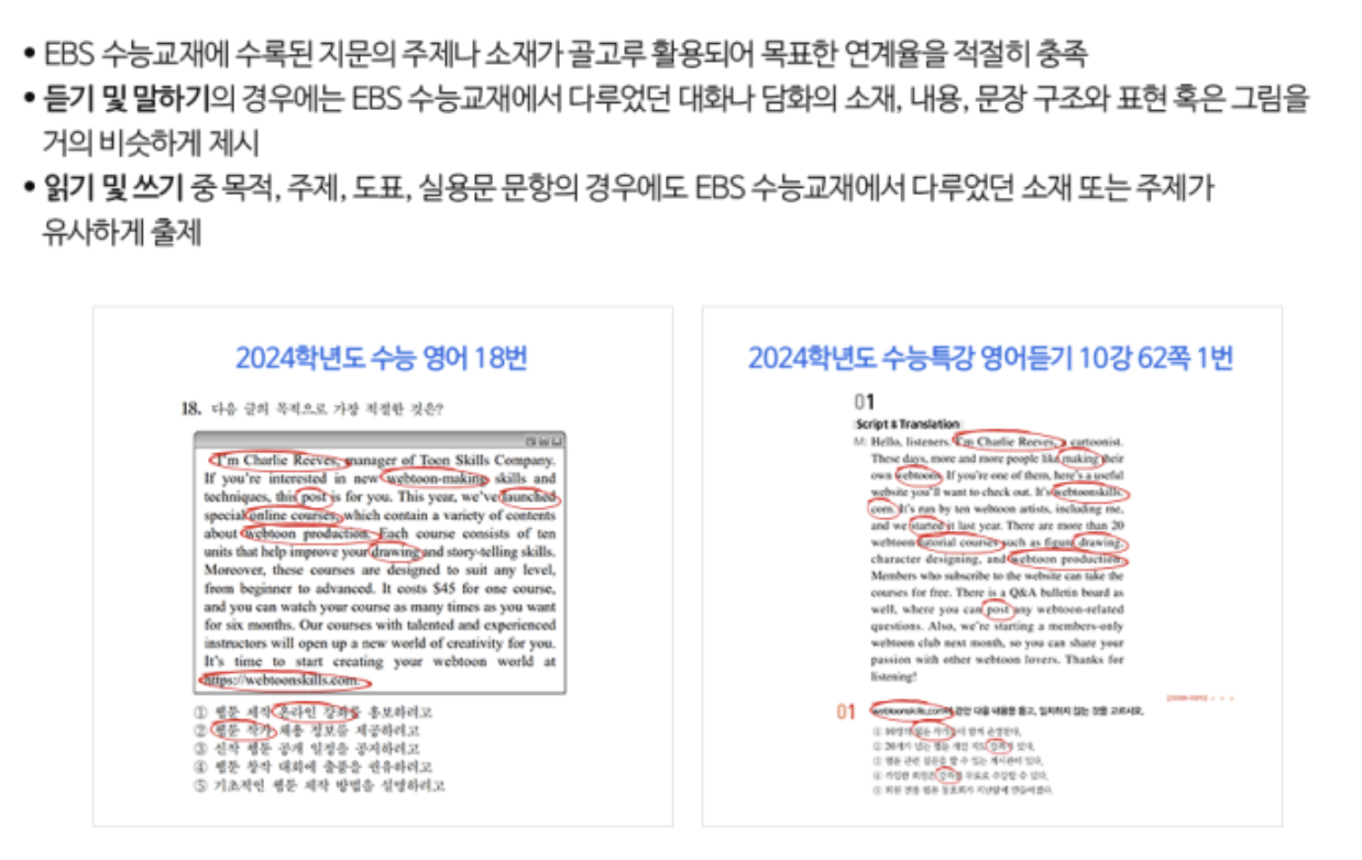 출제 경향 반영: 연계 교재에서 직접적인 문제 혹은 유사한 문제가 출제됨.