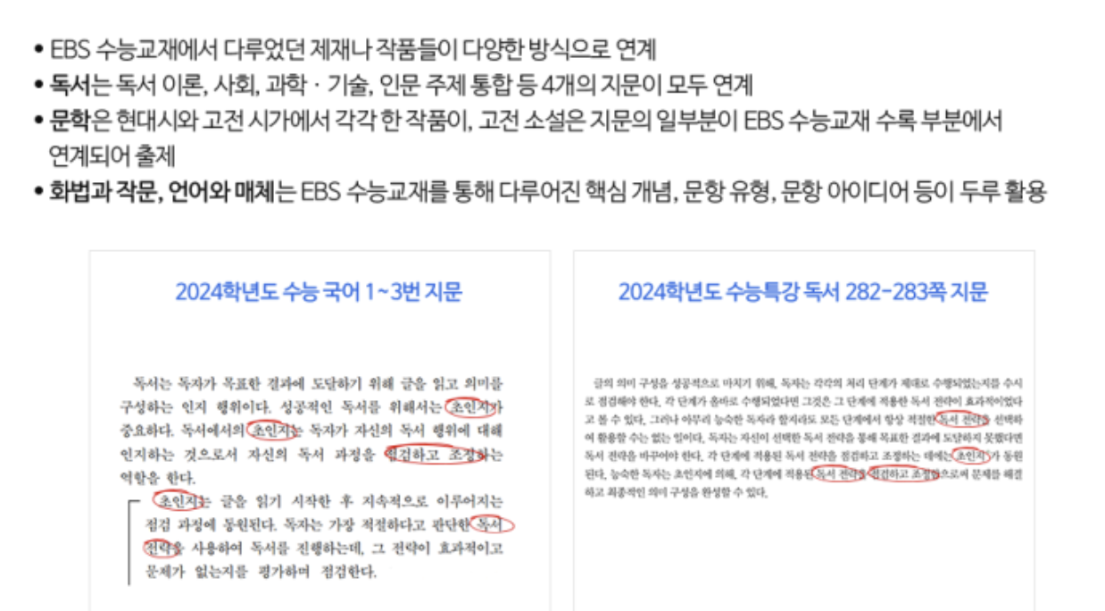 출제 경향 반영: 연계 교재에서 직접적인 문제 혹은 유사한 문제가 출제됨.