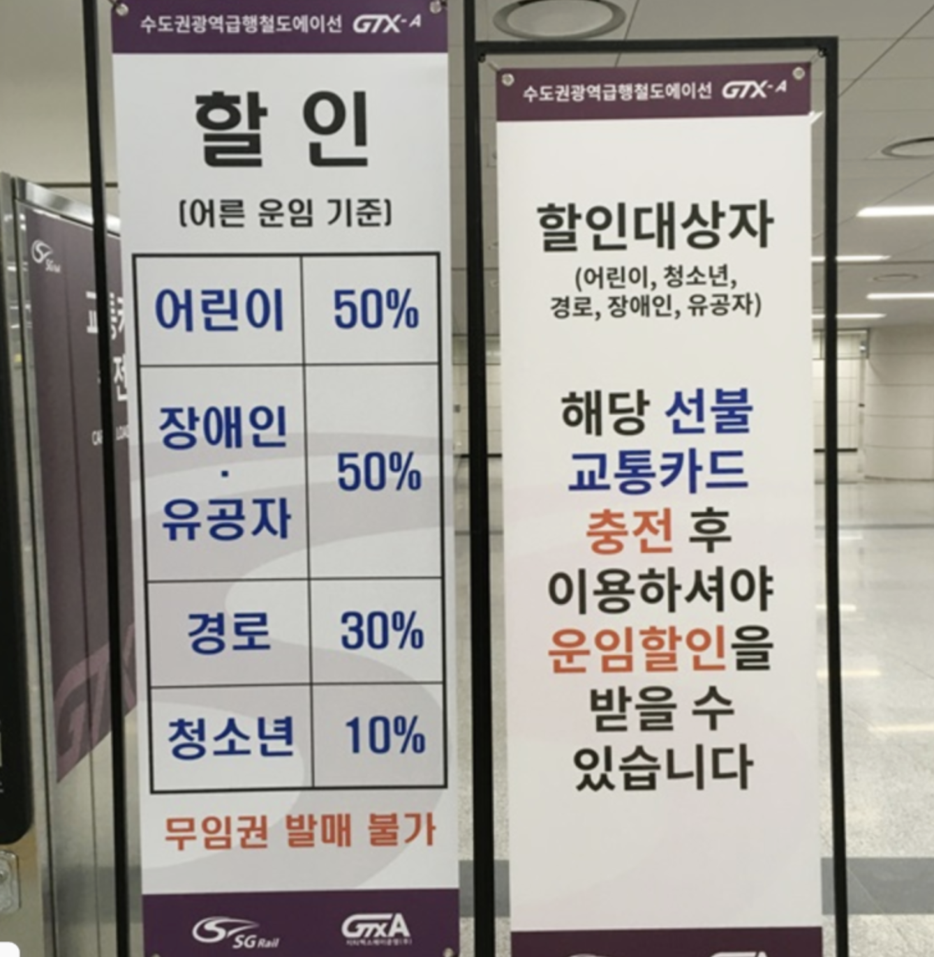 장애인, 65세 이상, 국가유공자 등은 기존 지하철과 달리 무료 이용 혜택이 없으니 참고하세요.